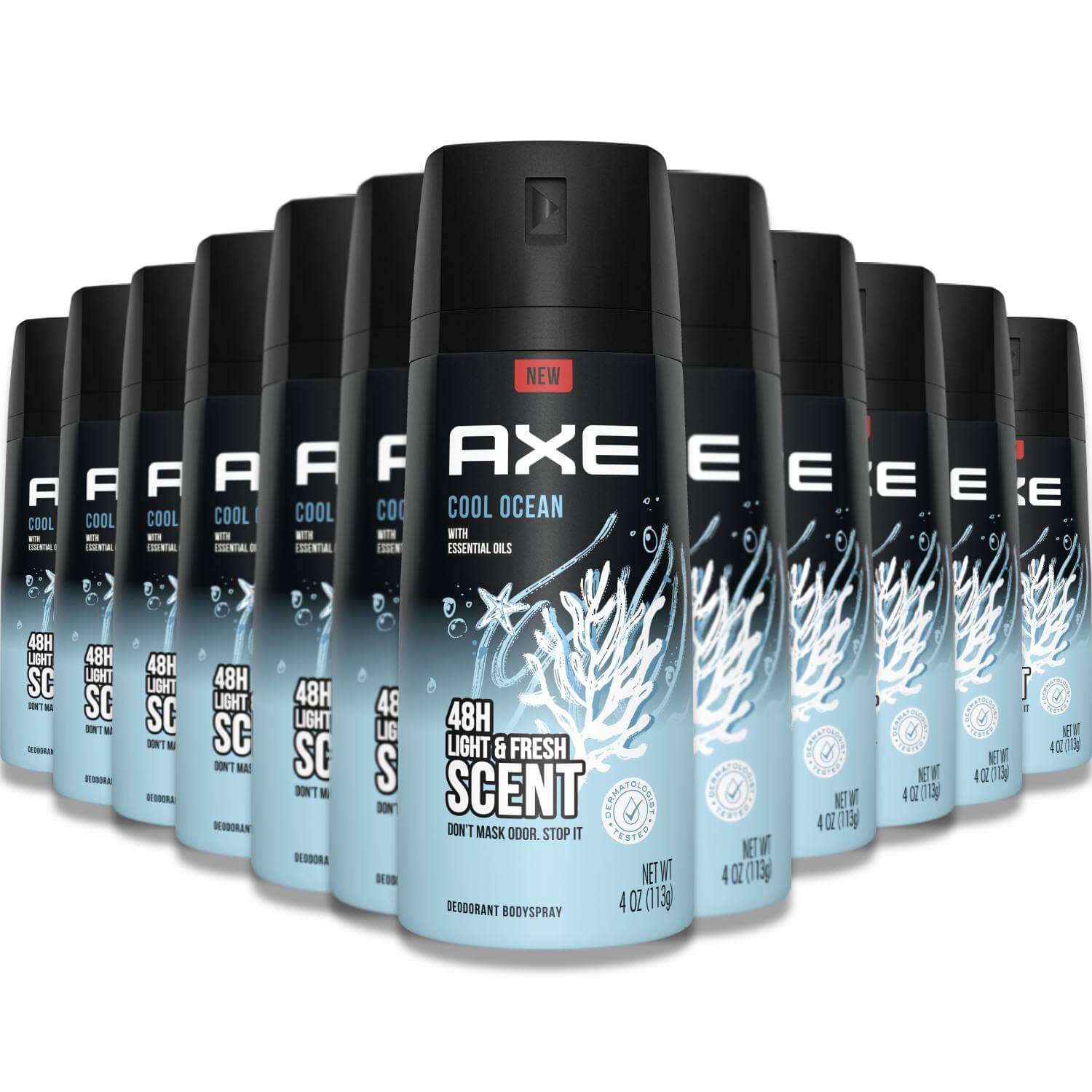 Keep odor at bay and stay cool with Axe Cool Ocean Deodorant Bodyspray. With this 12-pack of 4 oz bottles, you'll have long-lasting freshness wherever you go. The light and fresh scent of cool ocean will invigorate your senses and leave you feeling confident all day. Perfect for active lifestyles, Axe bodyspray provides reliable protection against odor while keeping you smelling great. Upgrade your grooming routine with Axe Cool Ocean Deodorant Bodyspray.