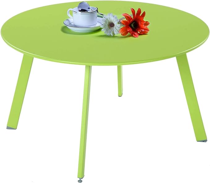 Round Steel Patio Coffee Table, Weather Resistant Outdoor Large Side Table