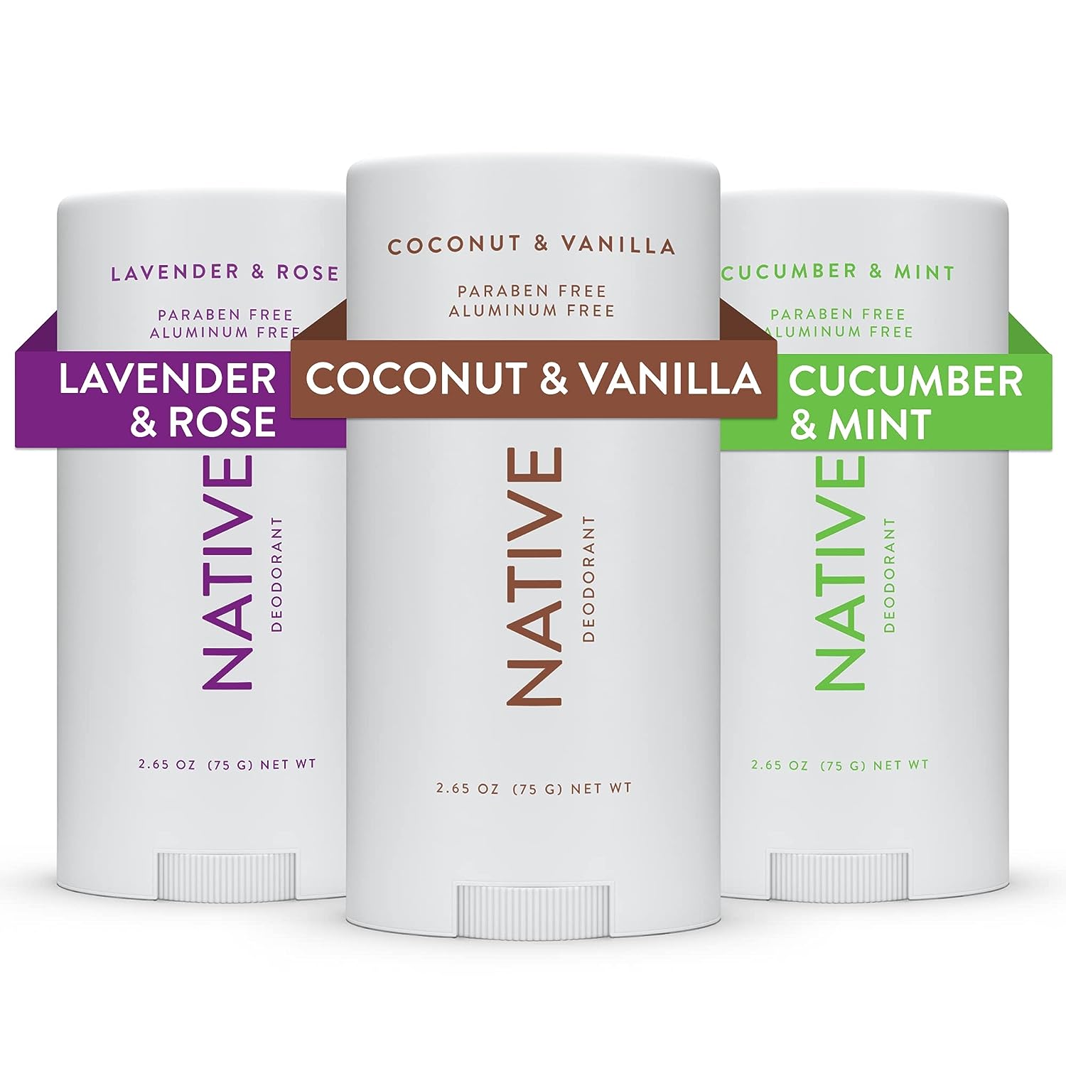 Native Deodorant Contains Naturally Derived Ingredients | Deodorant for Women and Men, Aluminum Free with Baking Soda | Coconut & Vanilla, Lavender & Rose, Cucumber & Mint, Variety Pack of 3