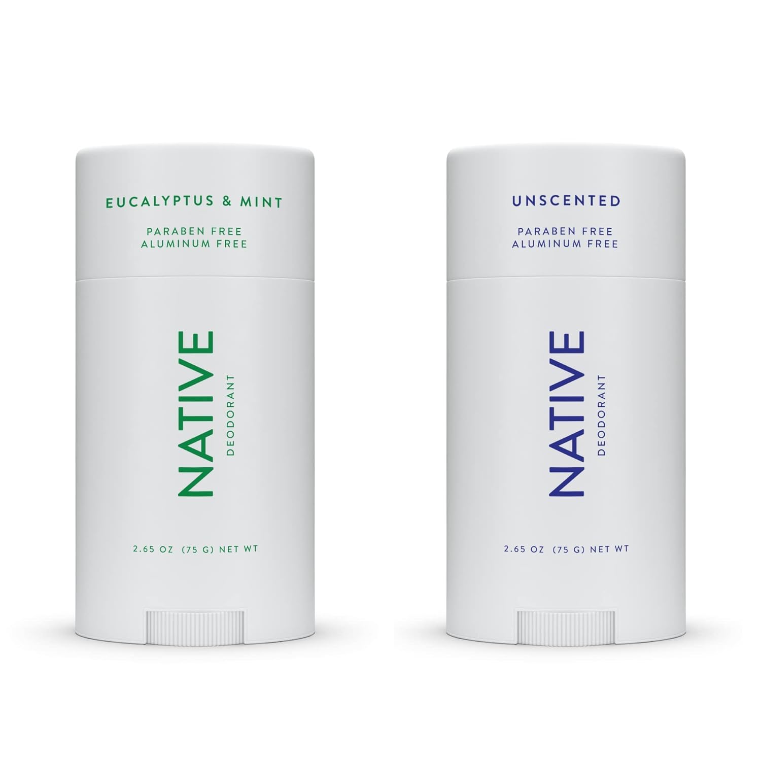Native Deodorant | Natural Deodorant for Women and Men, Aluminum Free with Baking Soda, Probiotics, Coconut Oil and Shea Butter | Eucalyptus & Mint and Unscented - Variety Pack of 2