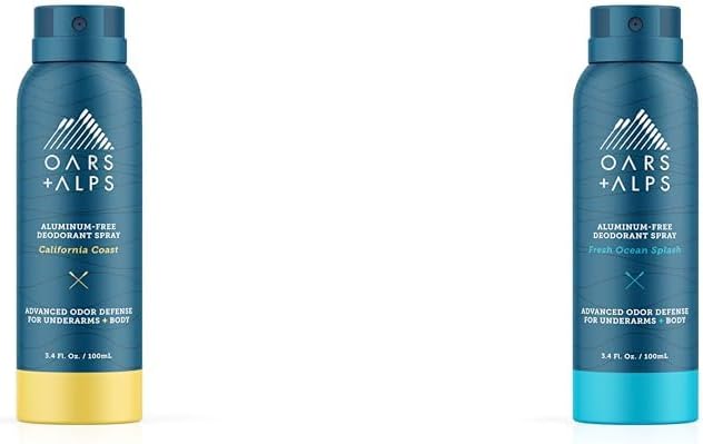 Oars + Alps Aluminum-Free Deodorant Spray Travel Size California Coast and Fresh Ocean Splash Bundle
