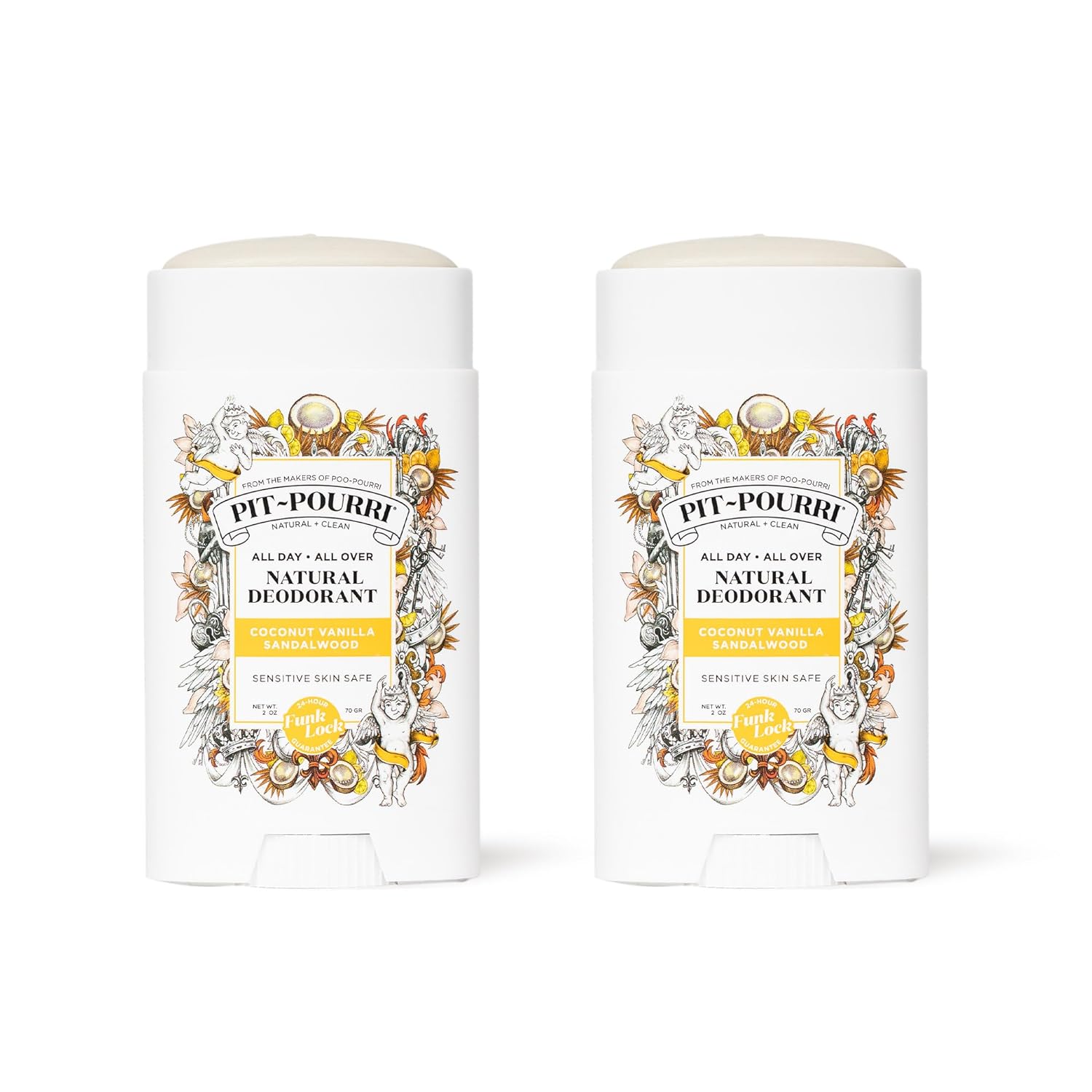 Pit-Pourri All Day-All Over Natural Deodorant, Coconut Vanilla and Sandalwood - 2 Oz (Pack of 2)