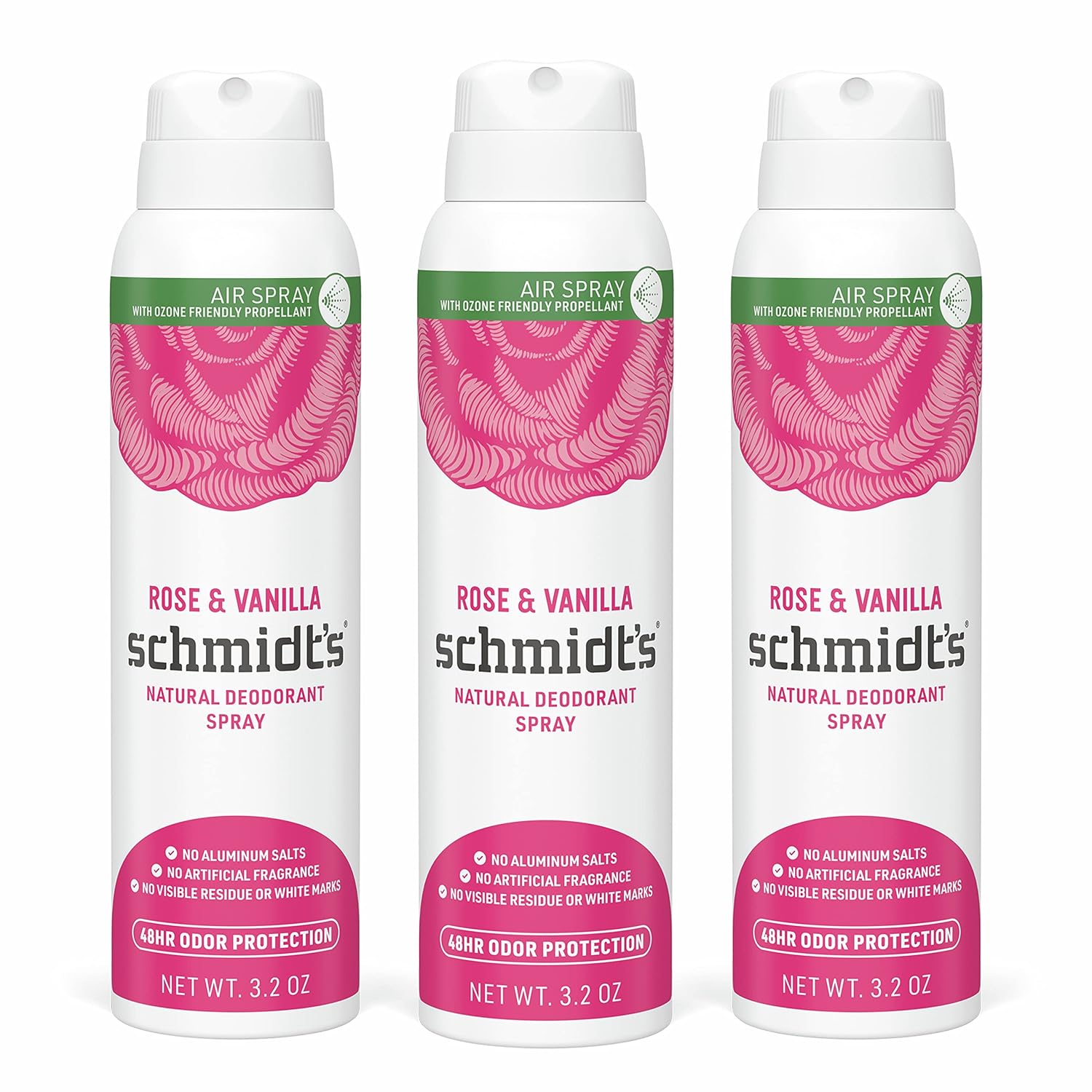 Schmidt's Natural Deodorant Spray for Women and Men, Rose and Vanilla with 48 Hour Protection, No Aluminum Salts, No White Marks, Cruelty Free, Vegan, Deodorant, 3.2 Ounce (Pack of 3)