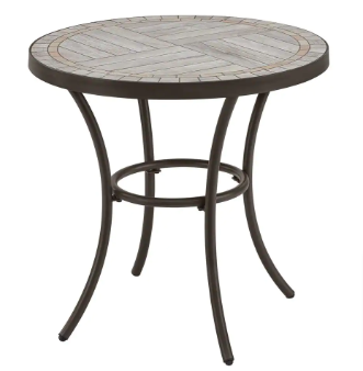 StyleWell 27 in. Brown Round Metal Outdoor Side Table with Grouted Porcelain Top - $80