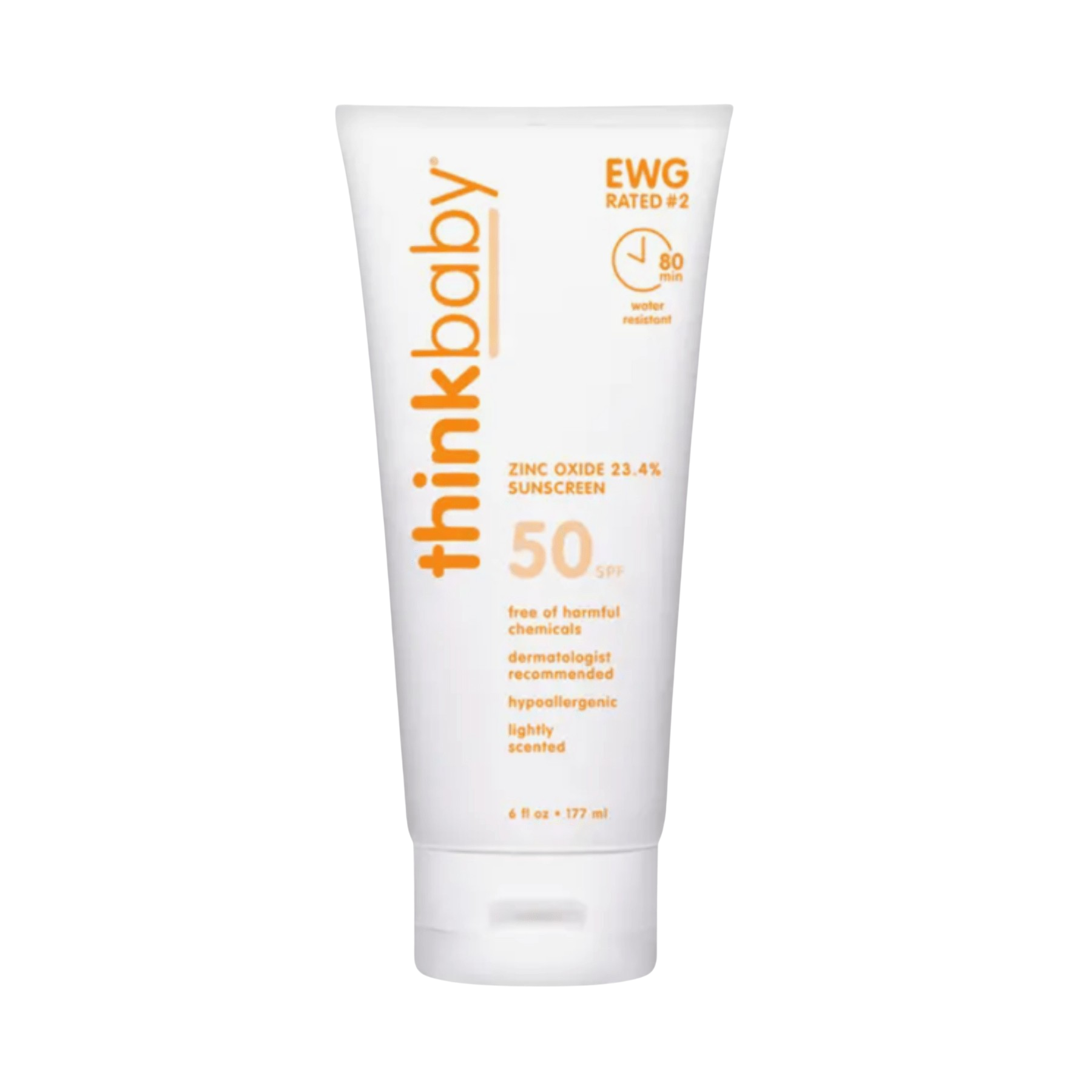 Enjoy the sun with your baby year-round with highly efficacious, gentle ingredients. ThinkBaby Sunscreen has got you (and your baby) covered (literally